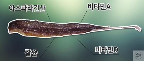 아스파라긴산, 비타민A, 칼슘, 비타민D, 오메가 3, 핵산 등등