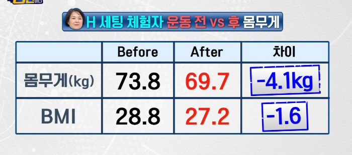 나는 몸신이다 422화에서는 3개의 운동법으로 일주일 간 감량 보장 배틀을 진행했는데, 그중에서 두 번째로 감량이 많이 된 H 세팅 운동법만 포스팅을 하려고 합니다. 다른 참가자들에 비해 H 세팅을 한 참가자 분이 연세도 있으신데도 불구하고 감량이 진행이 되셨거든요.