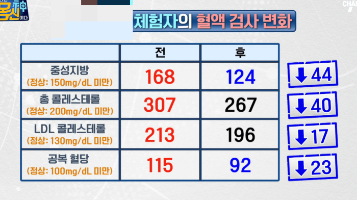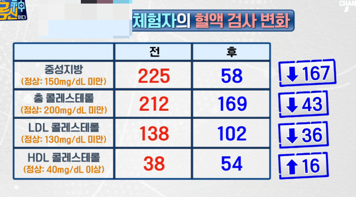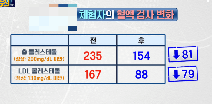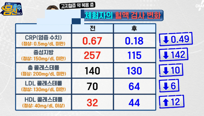 그리고 총콜레스테롤과 나쁜 콜레스테롤, 지방간 지수 등 이상지질혈증, 혈관 질환 유발 인자도 감소한 것으로 확인되었다고 합니다.