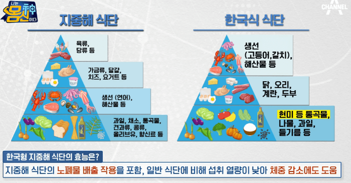 지중해 식단에 구성되는 식재료를 한국인의 입맛에 적합하게 바꿔서 탄수화물을 줄이고 지방과 단백질 비중을 늘린 식단을 말합니다.